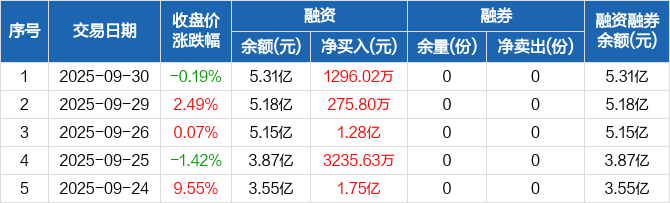 半导体设备ETF:融资余额5.31亿元,创历史新高(09-30)
