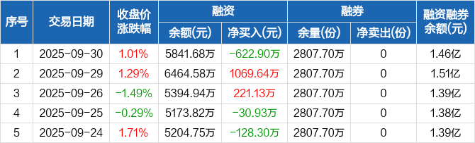 1000ETF:融资净偿还622.9万元,融资余额5841.68万元(09-30)