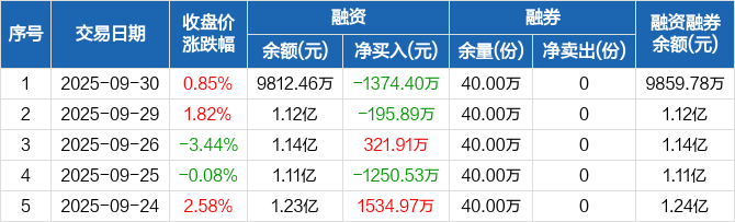 消费电子ETF:融资净偿还1374.4万元,融资余额9812.46万元(09-30)