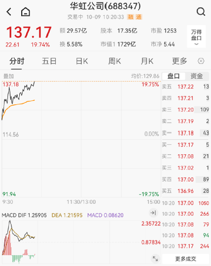 存储芯片概念股全线爆发。华虹公司逼近20%涨停;雅克科技、通富微电、赛腾股份等集体涨停;中芯国际涨超7%,总市值达8008亿元。