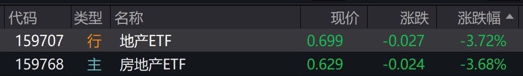 受盘面影响,地产ETF、房地产ETF跌超3%。