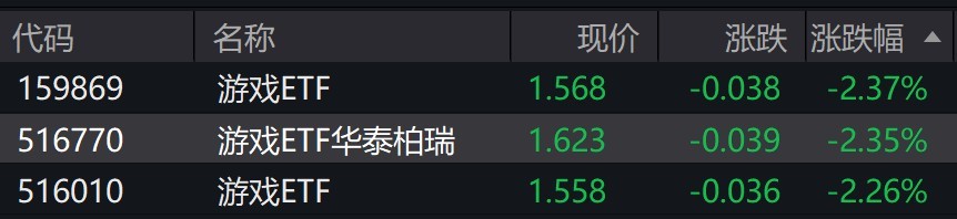 受盘面影响,游戏ETF跌超2%。