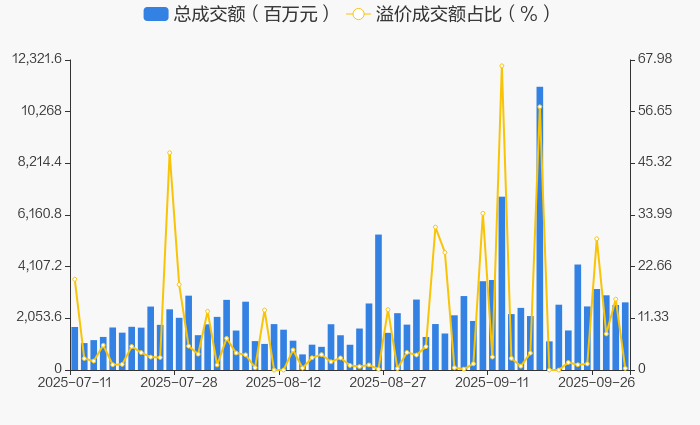 2025年10月9日沪深两市73只个股发生180笔大宗交易,共成交26.88亿元。其中,沪市33只个股共81笔大宗交易,总成交额为12.94亿元;深市38只个股共97笔大宗交易,总成交额为13.92亿元。沪指当日收盘报3933.97点,上涨1.32%,成交金额1.22万亿元。