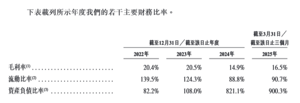 而在利润方面,挚达科技2010年起开始营运,一直处于亏损状态。2022年、2023年及2024年,挚达科技分别产生净亏损人民币0.25亿元、人民币0.58亿元及人民币2.36亿元。截至2024年及2025年3月31日止三个月,挚达科技分别录得净亏损人民币0.32亿元及人民币0.17亿元。