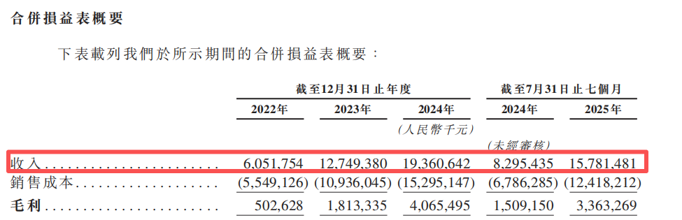 招股书(申报稿)显示,2022年、2023年、2024年及2025年前7月,岚图汽车的收入分别为60.52亿元、127.50亿元、193.61亿元、157.81亿元,其中2022年至2024年收入的复合年增长率为78.90%。