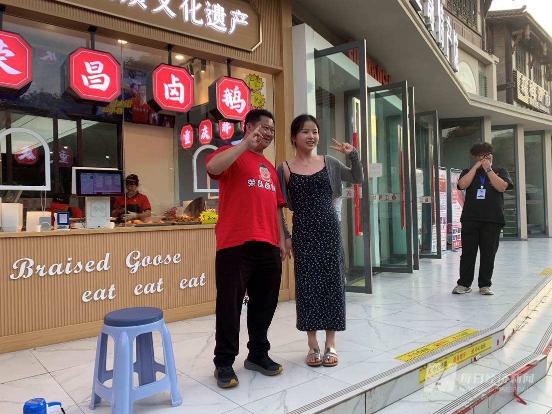 仍有零星的游客前来找“卤鹅哥”合影,图片来源:每经记者蔡鼎摄