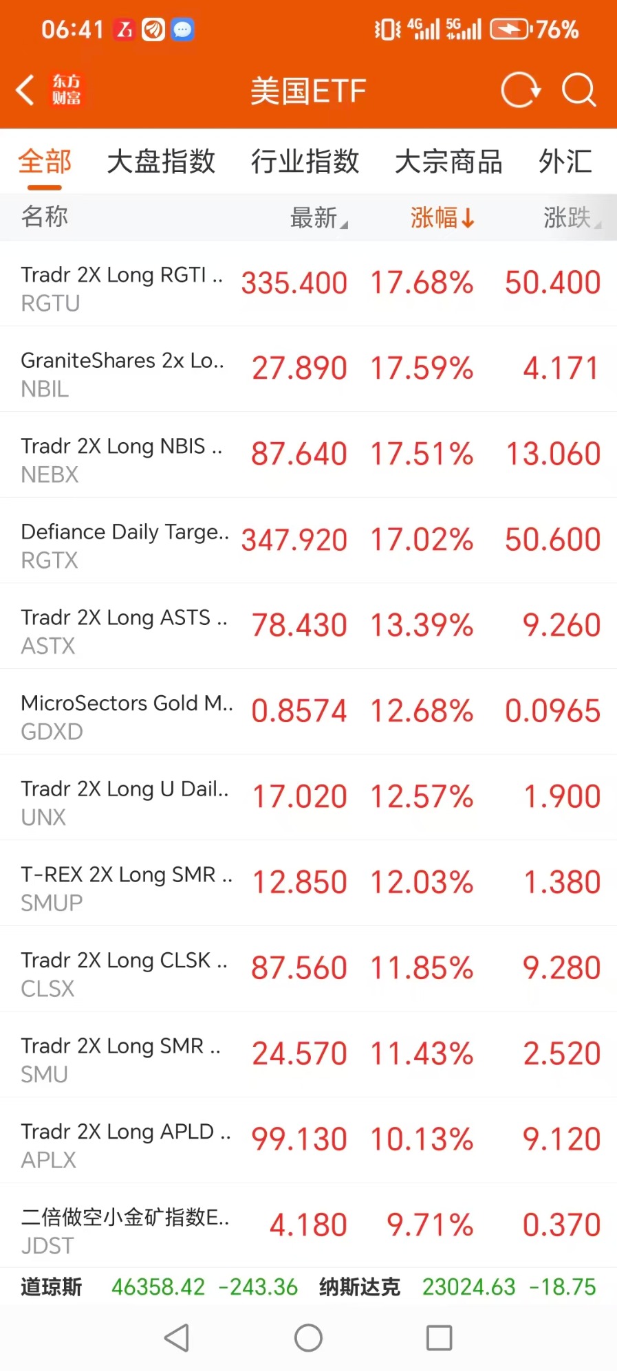 $2倍做多RGTI ETF-Tradr (RGTU.US)$ 升17.34%,成交额3330.79万美元。