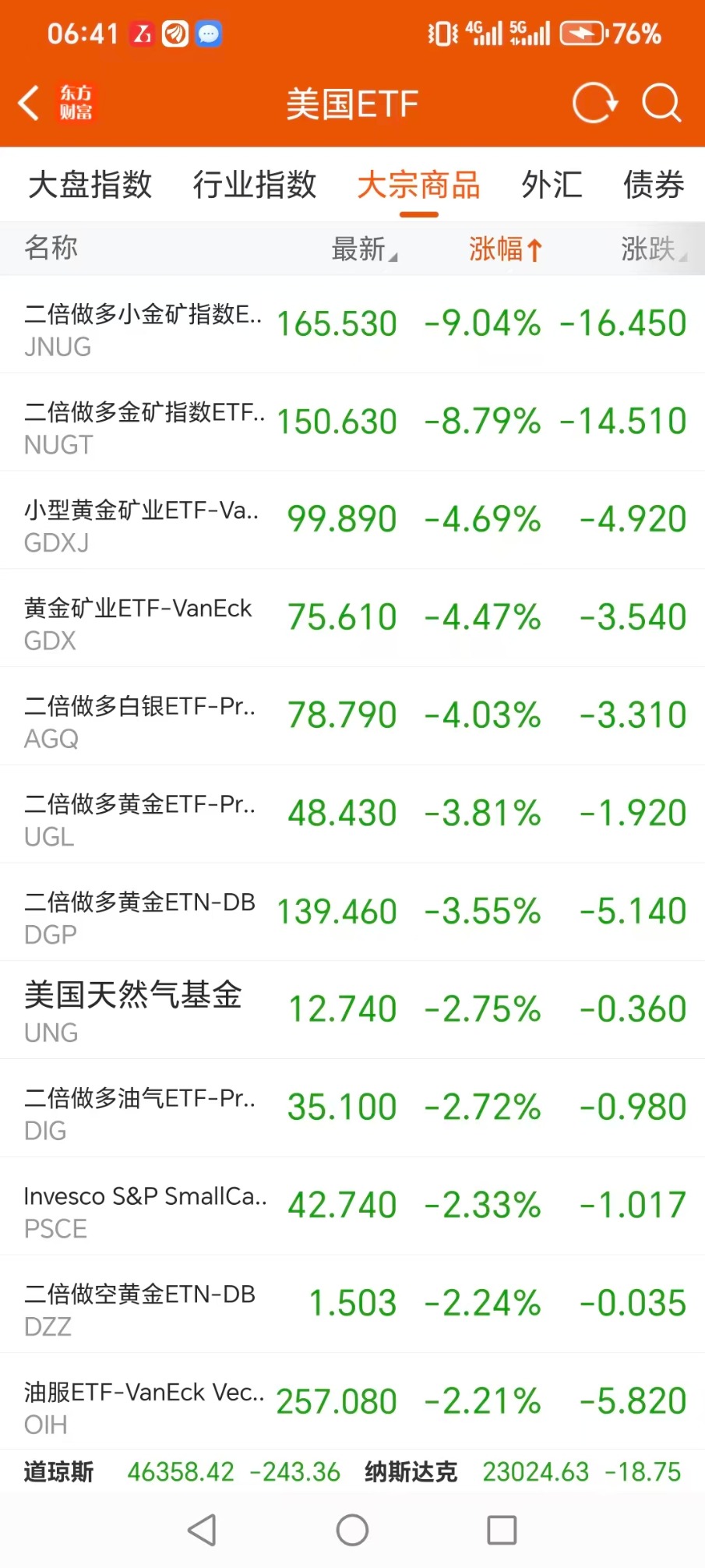 $小型黄金矿业ETF-VanEck (GDXJ.US)$ 跌4.60%,成交额9.79亿美元。