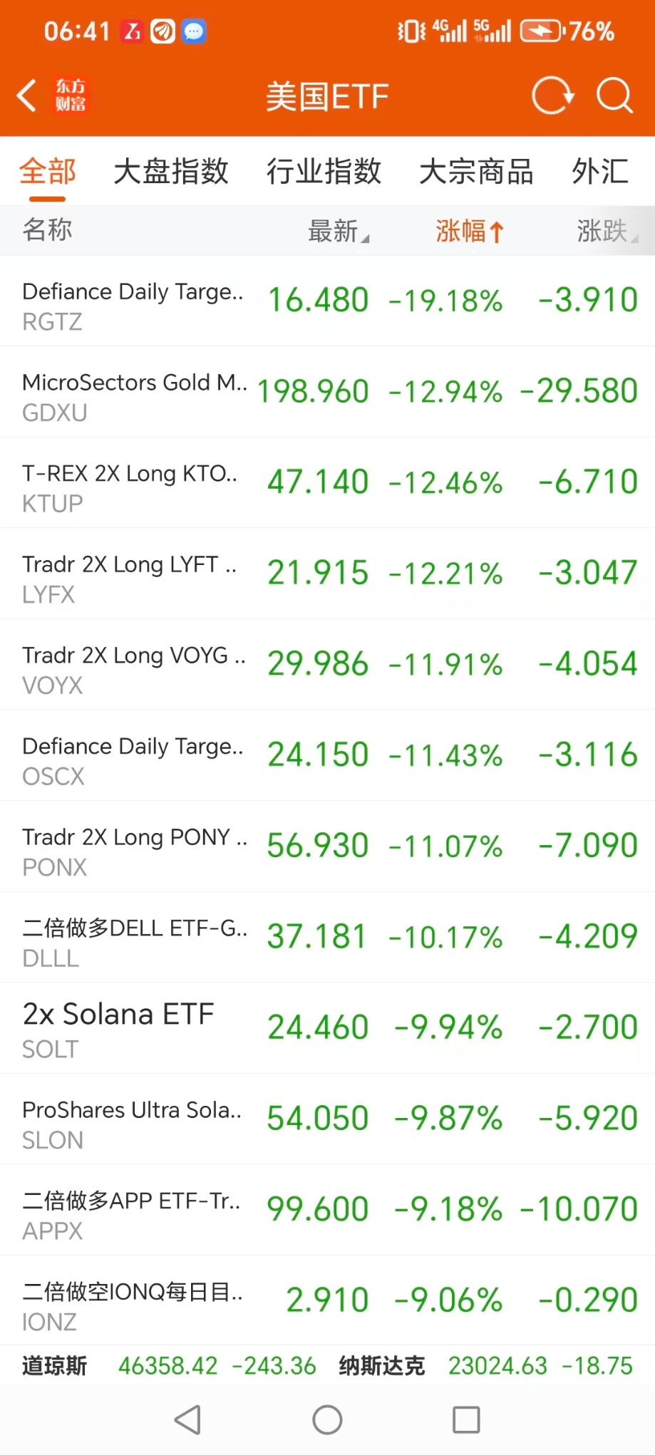 $2倍做多白银ETF-ProShares (AGQ.US)$ 跌4.01%,成交额8.7亿美元。