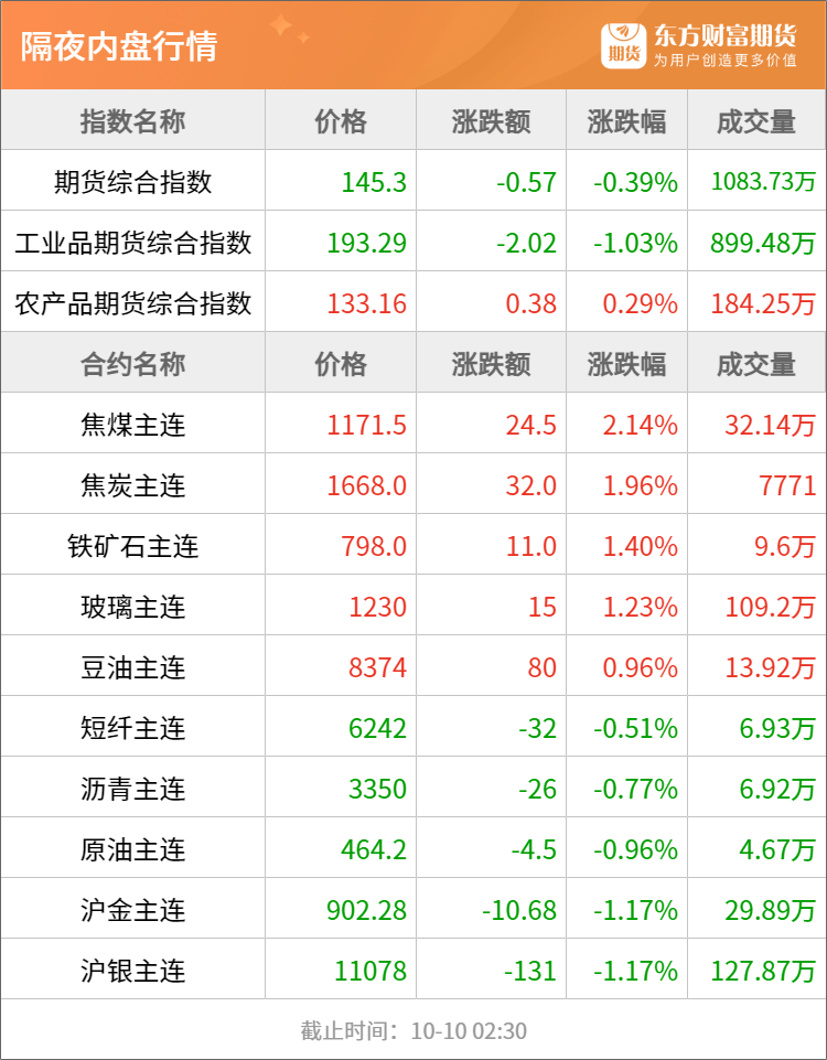 隔夜行情