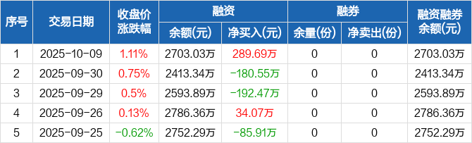农业ETF:融资净买入289.69万元,融资余额2703.03万元(10-09)
