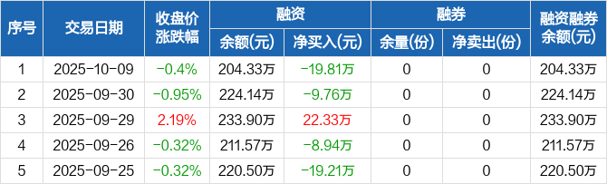 金融地产ETF:融资净偿还19.81万元,融资余额204.33万元(10-09)