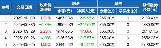 5GETF:融资净偿还229.96万元,融资余额1467.03万元(10-09)