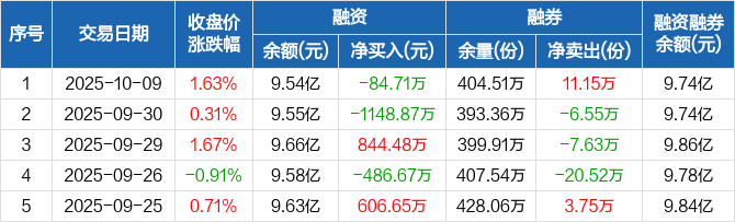 沪深300ETF:融资净偿还84.71万元,融资余额9.54亿元(10-09)