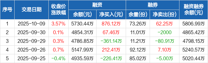 电力ETF:融资净买入876.12万元,融资余额5730.44万元(10-09)