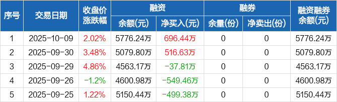 锂电池ETF:融资净买入696.44万元,融资余额5776.24万元(10-09)