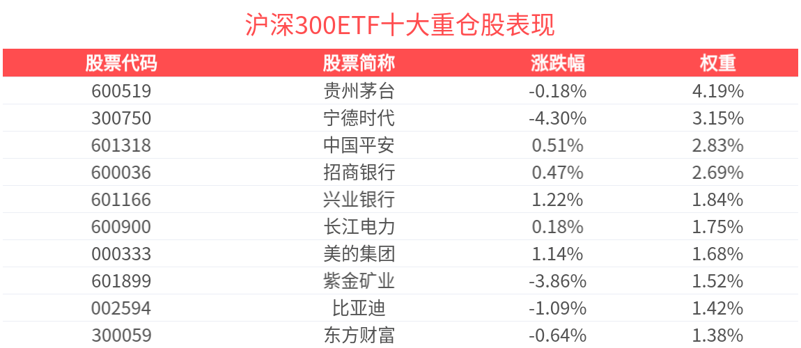 数据显示,截至2025年9月30日,沪深300指数前十大权重股分别为宁德时代、贵州茅台、中国平安、招商银行、紫金矿业、新易盛、中际旭创、美的集团、东方财富、长江电力,前十大权重股合计占比21.49%。
