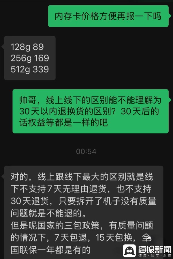 “线上线下的退换货政策确实是不一样的,线下门店本来就没有自行退款服务,而且我们在买机器之前都会主动告知顾客,机器无质量问题,不退不换。全国都一样,超过7天的,暂时无法支持退差价。”宋先生又继续表示,这个情况对于一线的销售人员来说也很突然,所以为尽力保全门店顾客的消费权益,降低损失,顾客可以在店内选购其他配件,抵扣差价。“这些差价费用由我们门店自行承担。此外,该促销活动将持续到11月13日。”