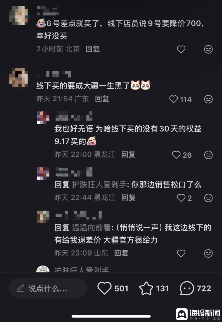 “早知道双11提前降价,谁会赶在国庆前花冤枉钱拍旅行视频?”一位网友的吐槽道出了许多人的心声。目前已有部分线上用户冒险选择退货重购,而更多线下用户仍在等待门店与品牌的协商结果。