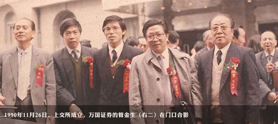 1988年,管金生创办万国证券,这家起步时只有数千万元资本金的证券公司很快就发展成资产规模数十亿元的综合性公司,开创了中国证券市场的多个先河。上交所1990年成立时,其交易规则、设备、交易员的培训等都有万国证券参与。管金生也在那时被誉为“中国证券教父”之一。