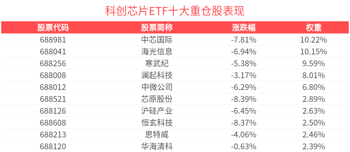 显示,截至2025年9月30日,上证科创板芯片指数前十大权重股分别为海光信息、澜起科技、中芯国际、寒武纪、中微公司、芯原股份、华虹公司、沪硅产业、华海清科、晶晨股份,前十大权重股合计占比59.69%。