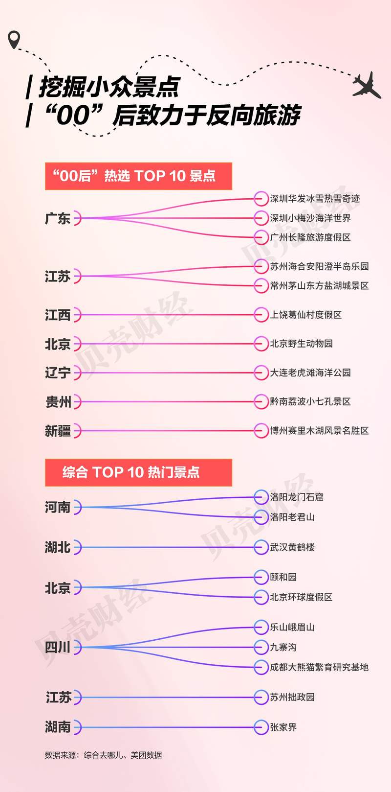 不过,“反向旅游”也出现了新的热度分化:有人成功探索到真正冷门的宝藏景点,也有人不约而同地涌向人气“黑马”目的地,例如假期订单量同比增长60%的景德镇,以及登顶全国县域酒店预订量榜首的九寨沟县。此外,相比于往年常见的“特种兵式”旅游,这届年轻人开启了省心省力的跟团游、包车游等躺平玩法,加上近年兴起的追星游、赛事游,共同推动多地旅游消费呈现强劲增长。