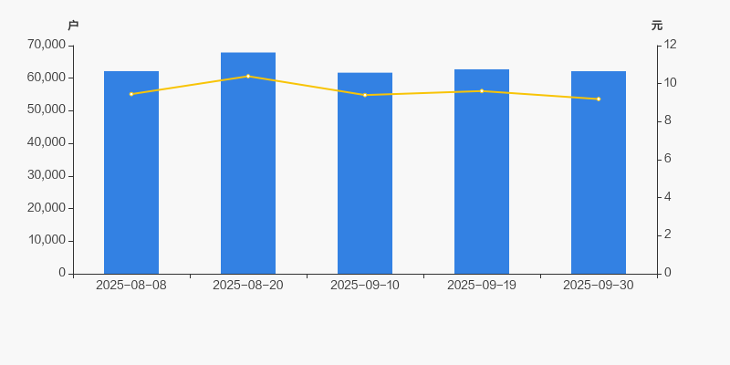 2025年8月8日至今,公司股东户数有所下降,区间跌幅为0.04%。2025年8月8日至2025年9月30日区间股价下降2.75%。