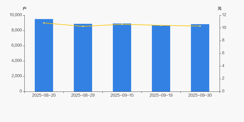 2025年8月20日至今,公司股东户数有所下降,区间跌幅为7.06%。2025年8月20日至2025年9月30日区间股价下降4.54%。