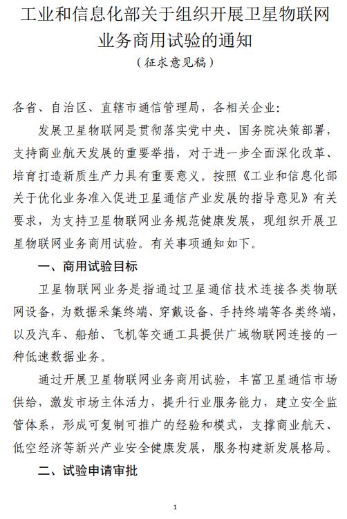 工信部征求意见:开展卫星物联网业务商用试验 丰富卫星通信市场供给