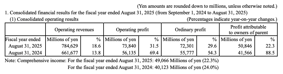 10月10日,MUJI无印良品母公司株式会社良品计画发布截至2025年8月底的2025财年业绩:营业收入同比增长18.6%,至7846.29亿日元;营业利润同比增长31.5%,至738.40亿日元;归属于母公司股东的净利润为508.46亿日元,同比增长22.3%。