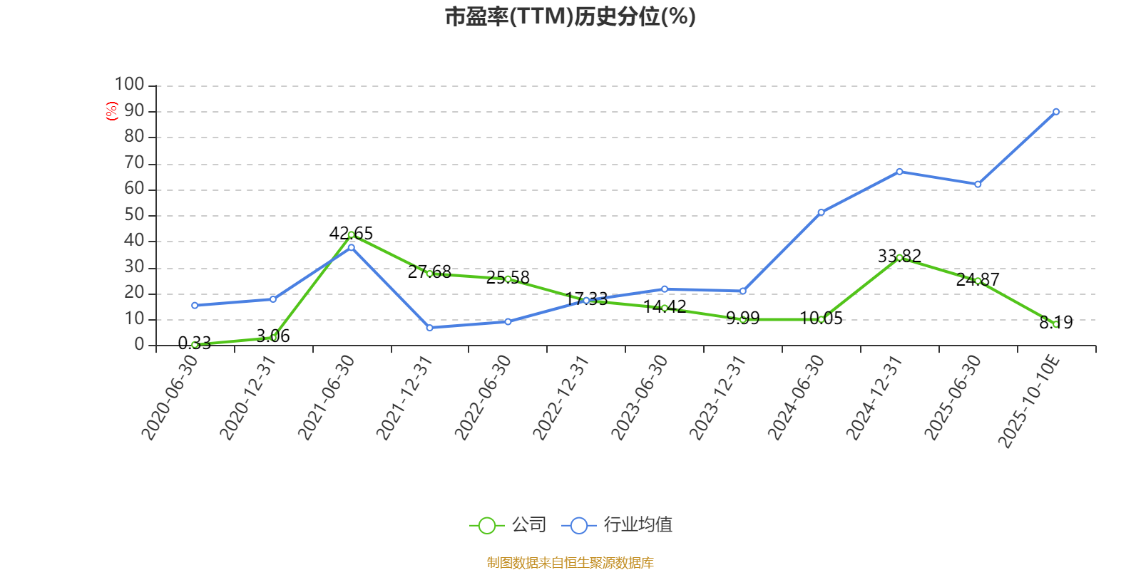 市盈率、市净率为负时,不显示当期分位数,会导致折线图中断。
