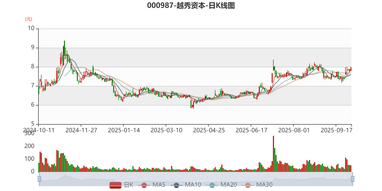 中证智能财讯越秀资本(000987)10月10日晚间披露业绩预告,预计2025年前三季度归母净利润29.22亿元至30.94亿元,同比增长70%-80%;扣非净利润预计14.06亿元至15.78亿元,同比增长18%-32%;基本每股收益0.5808元/股-0.6152元/股。以10月10日收盘价计算,越秀资本目前市盈率(TTM)约为10.86倍-11.39倍,市净率(LF)约1.3倍,市销率(TTM)约4.65倍。