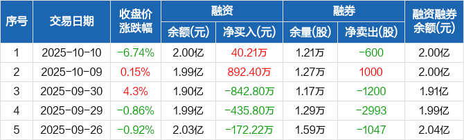 安路科技:融资净买入40.21万元,融资余额2亿元(10-10)