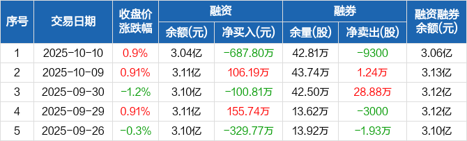 广州港:融资净偿还687.8万元,融资余额3.04亿元(10-10)