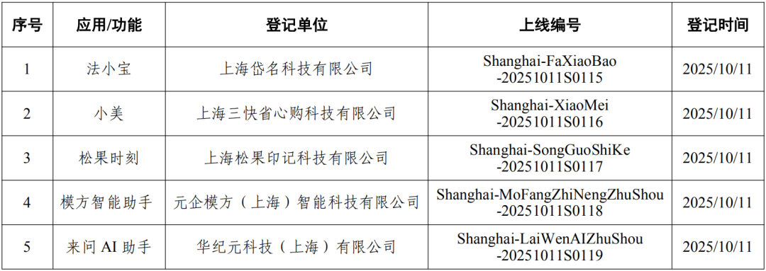 上海市新增5款已完成登记的生成式人工智能服务