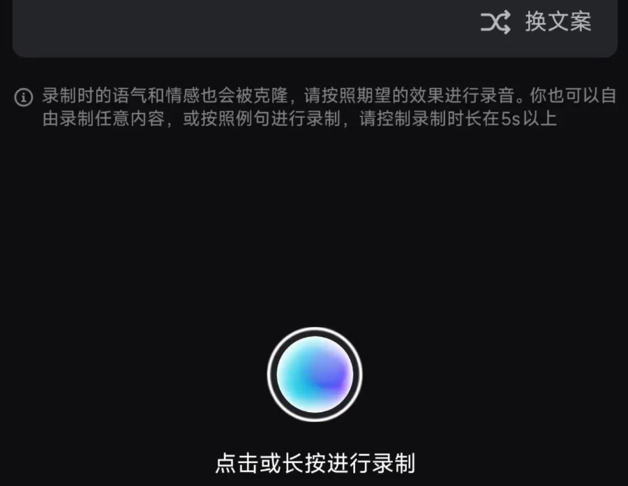 (剪映的“音色克隆”功能,要求用户自行录制声音)