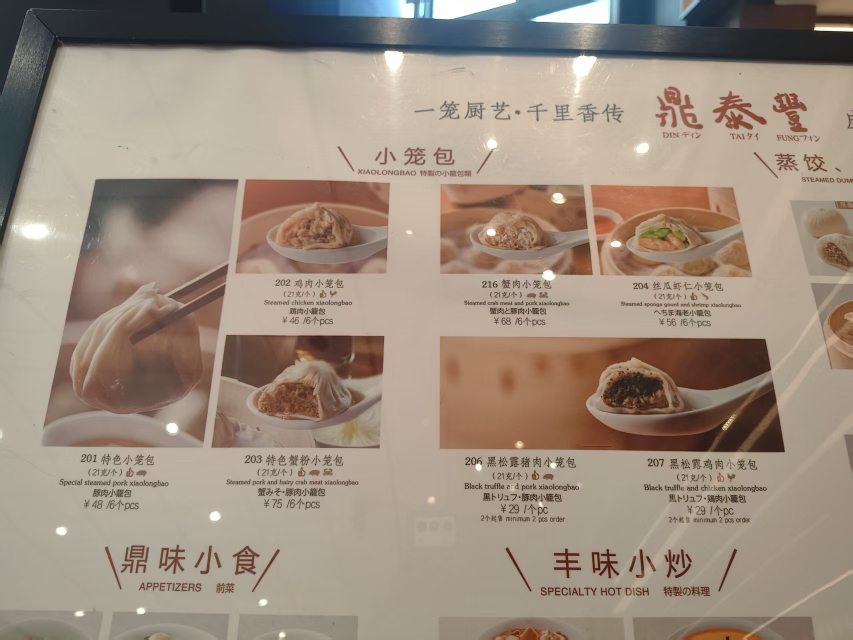 图:鼎泰丰罗湖万象城店菜单局部。周良成/摄