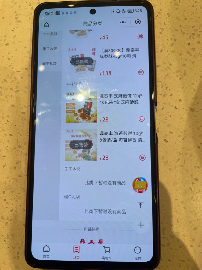 记者查询鼎泰丰微信商城发现,目前该商城仅有一款芝麻煎饼可供出售,其余商品均已售罄,或者下架。