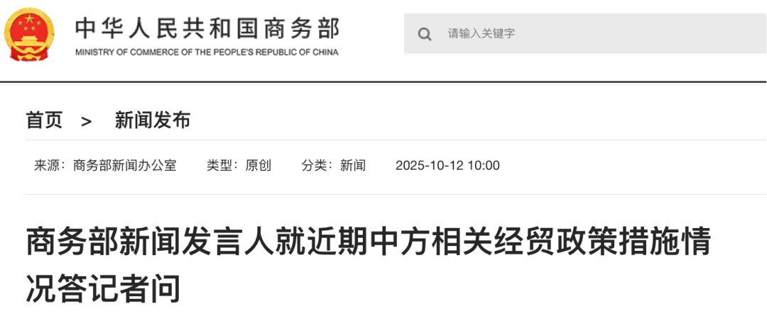 10月12日,商务部新闻发言人就近期中方相关经贸政策措施情况答记者问。具体如下: