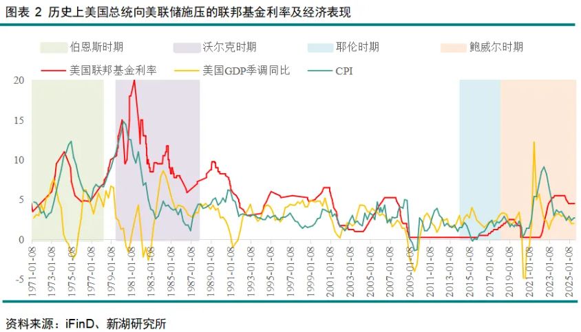 新湖期货研究所宏观金融组在研报中称,美联储和财政部在1951年达成协议后,美联储才开始真正获得制定货币政策的独立性。当前,美联储被誉为“世界上最独立的央行”,但从历史上来看,其政策也很难真正避免总统施政的影响。