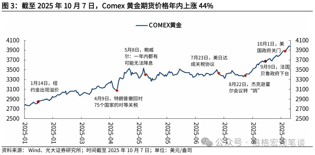 2025年国庆假期,黄金价格再次突破历史新高图片来源:光大宏观团队