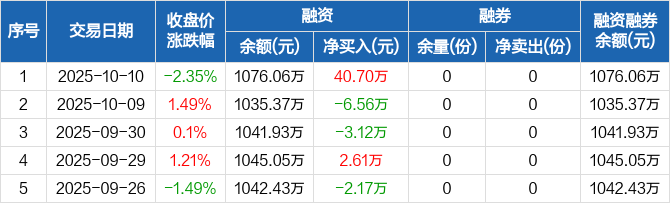中国A50ETF:融资净买入40.7万元,融资余额1076.06万元(10-10)