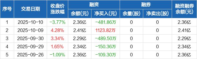志特新材:融资净偿还481.86万元,融资余额2.36亿元(10-10)