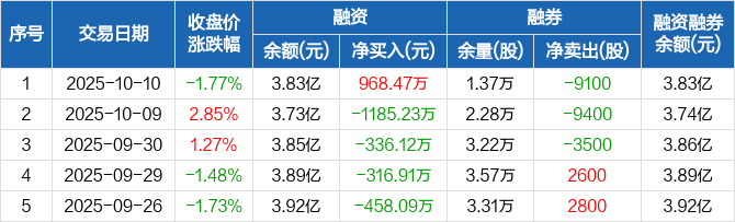 苏试试验:融资净买入968.47万元,融资余额3.83亿元(10-10)