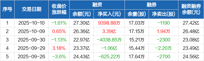 沪电股份:融资净买入9398.88万元,融资余额27.3亿元(10-10)