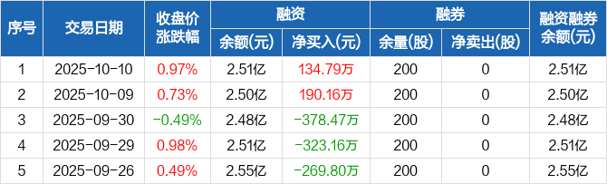 现代投资:融资净买入134.79万元,融资余额2.51亿元(10-10)