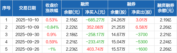 老板电器:融资净偿还685.27万元,融资余额2.15亿元(10-10)