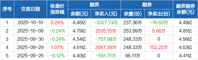 消费ETF:融资净偿还3327.74万元,融资余额4.46亿元(10-10)