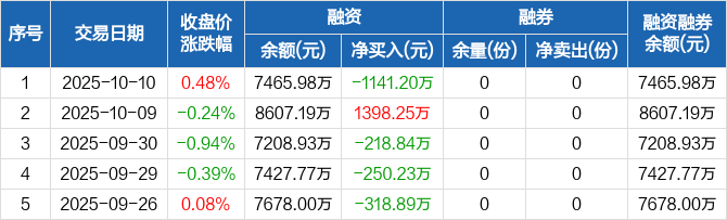 银行ETF:融资净偿还1141.2万元,融资余额7465.98万元(10-10)