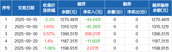中证A500ETF华安:融资净偿还44.64万元,融资余额1270.48万元(10-10)